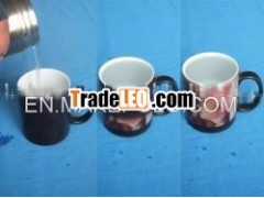 full color sublimation changing mug:After pouring hot water into the color changing mug, the mug'soutside color vanishes and